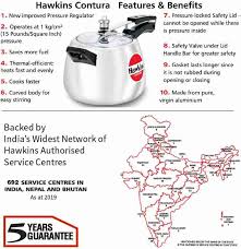 You can prepare your favourite meals in a jiffy with the efficient Hawkins Contura Aluminium Pressure Cooker. It is designed with rounded sides that make stirring, removing, and viewing your food convenient. Built with an inside-fitting lid, this pressure cooker keeps the pressure locked for safety and efficiency while cooking. Moreover, a safety valve is situated below the lid's handlebar, which deflects the steam in a downward direction to prevent burns.