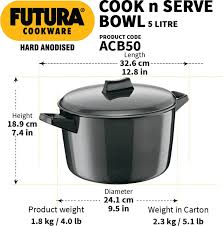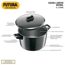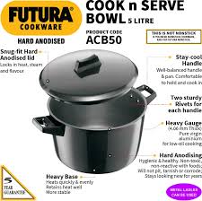 Whether you are planning to please your guests with sumptuous feast or cook a healthy meal for yourself, this Futura HA Cook-n-Serve Bowl from Hawkins is sure to assist you in the cooking process. Boasting of a smooth black exterior made from hard anodised aluminium material, this Cook-n-Serve Bowl delivers quick and even heating performance throughout the surface. Designed with a non-induction bottom, this bowl is perfect for use on gas stoves. You can cover the vessel with the lid to keep the food warm for longer. The Hawkins Futura HA Cook-n-Serve Bowl is perfect for preparing a variety of Indian and Western dishes in a short span of time.
