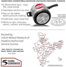 Built with a hard anodised, double-thick 6.35 mm base and permanent induction-friendly disc, the Hawkins Hevibase Induction Bottom Aluminium Pressure Cooker heats up rapidly to cook your food in a short time. Also, it is suitable for light frying before you pressure cook the food item. Moreover, this pressure cooker’s base always remains flat and does not bulge, thereby making it convenient to place on burners.