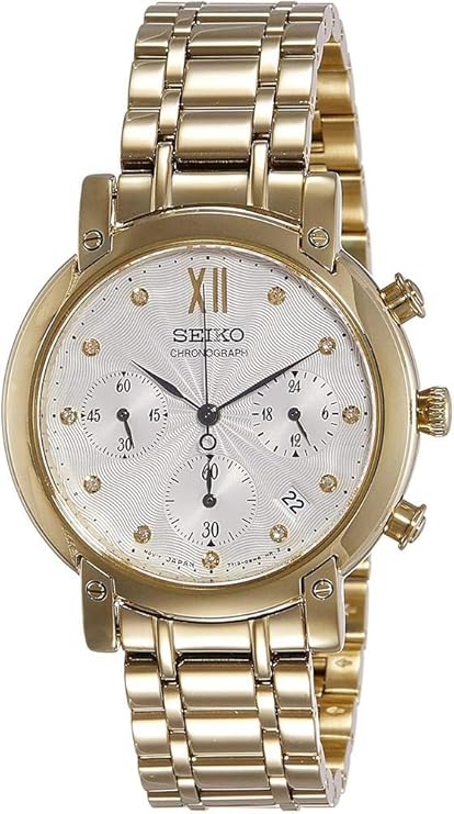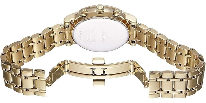 No other watch brand has stood the popularity test of time quite like Seiko. This gold watch speaks tractability with a touch of elegance and style. The popular stainless steel gold case and gold stainless-steel band combo will work with every outfit and will quickly become a staple piece in any womens wardrobe. With a 50 meters / 165 feet / 5 atm water resistance and durable antireflective sapphire crystal, this watch will keep on ticking and looking great even on your toughest days. Set the trends with your impeccable fashion sense and amp up your wardrobe with the latest from Seiko watches.