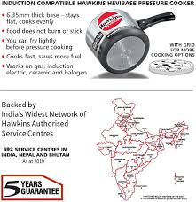 Built with a hard anodised, double-thick 6.35 mm base and permanent induction-friendly disc, the Hawkins Hevibase Induction Bottom Aluminium Pressure Cooker heats up rapidly to cook your food in a short time. Also, it is suitable for light frying before you pressure cook the food item. Moreover, this pressure cooker’s base always remains flat and does not bulge, thereby making it convenient to place on burners.