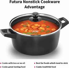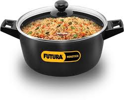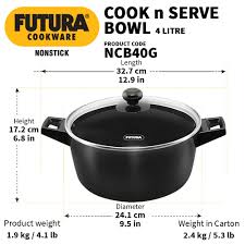 Flat Base - Ideal for cooking & serving. Stay-cool Handles - Comfortable to hold. Stay-cool Knob - With finger-guard. Futura Nonstick applied on Hard Anodized Surface - Lasts longer. Extra-Thick Body (4.06 mm) - Cooks fast & evenly. Food stays hot longer. Protective Hard Anodising - Will not tarnish or corrode. Stays looking new for years. Futura Cook n Serve Bowls are ideal for cooking a wide range of Indian and Western dishes such as pulao, biryani, vegetables, dals, soups, stews, curries and desserts. The 4.06 mm thick base and sides of these Cook n Serve Bowls spread heat evenly and retain warmth for a long time - making them excellent utensils for both cooking and serving. Cooking and serving in the same bowl makes good sense - the food stays hot longer and you have less to clean up and less for storage. These bowls are designed for convenient cooking and elegance on the dining table. The cooking surface is made of PFOA-free with a unique patented process by which high quality nonstick coating (made in Germany) is locked firmly into the tough Hard Anodized surface underneath. Therefore, the nonstick, if used properly, would last longer than the ordinary nonstick. It comes with a tough, heat-resistant Glass Lid with a strong stainless steel rim. It is suitable for domestic gas, electric, ceramic and halogen cooktops.