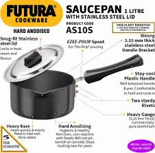 Hard Anodised Aluminium - tough and durable, will not pit, tarnish or corrode and will stay looking new for years. It has specially designed technologically advanced EZEE POUR spout for almost no-drip pouring. It has a strong, stay-cool plastic handle fixed on sturdy stainless steel bracket which is permanently riveted to the Pan. It comes with stainless steel lid. It is made of hard anodised aluminium, it is built heavily to last longer. Suitable for use on domestic gas, electric, ceramic and halogen stoves. Perfect for making tea, coffee, soups, sauces, chutneys, gravies, curries, Rice, Pilau, Dal; Boiling noodles, pasta, eggs; Cooking food for infants; Reheating food and for tadka. The Hard Anodised Saucepan has technologically advanced EZEE-POUR� which is a specially designed spout for easy pouring with almost no drip, and which is particularly preferred for making soups, tea or other beverages, or boiling milk. The Saucepans have strong, stay-cool plastic handles fixed on sturdy stainless steel brackets which are permanently riveted to the pans. The Hard Anodised finish on these pots will stay looking new for years. These pots are suitable for domestic gas, electric, ceramic and halogen cooktops. The Lid is made of AISI 304, 18/8 food grade Stainless Steel that is extremely hygienic, durable and non-reactive to most foods. It has a comfortable, stay-cool plastic knob.