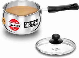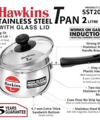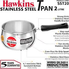 Superior Food-Grade Non-magnetic Stainless Steel body. 4.7 mm Extra Thick Sandwich bottom - Heats evenly. Magnetic Steel base - Works on Induction Gas Electric. ?Ezee-Pour? Spout - For easy, no-drip pouring. Strong, sturdy, stay-cool handle - Comfortable to hold. Ideal for making tea, coffee, soup, boiling milk & water, cooking instant noodles and reheating food. The TPan body is made of AISI 304, 18/8 superior food grade stainless steel for healthy and hygienic cooking. The 4.7 mm extra-thick sandwich bottom stays flat, heats evenly and will not develop hotspots. The AISI 430 grade magnetic stainless steel base plate that makes the pan work well on both Gas and Induction. Hawkins Stainless Steel Cookware also comes with a toughened Glass Lid made of 4 mm thick, heat-resistant glass with a strong stainless steel rim and stay-cool knob.