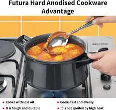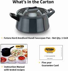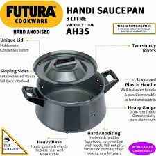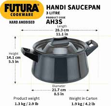 Hawkins brings you this easy to hold and handle Handi Saucepan to make cooking easier in the kitchen. The black Futura saucepan is made from high quality aluminium and is durable. Designed with a capacity of 3 L, the handi saucepan is ideal to boil vegetables, make soups and sweet dishes. It comes with short handles on either sides which make handling the saucepan easy while cooking or taking it down from the oven. The saucepan comes with a lid so that you can keep the food covered in the saucepan before serving it.