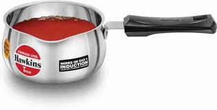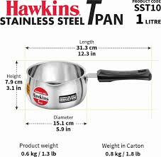 Superior, "rust-proof", food-grade Stainless Steel for healthy and hygienic cooking. The 4.7 mm extra-thick sandwich bottom stays flat, heats evenly and will not develop hotspots. The AISI 430 grade magnetic stainless steel base plate that makes the pan work well on both Gas and Induction. It has a strong, stay-cool plastic handle fixed on sturdy stainless steel bracket which is permanently riveted to the Pan. Suitable for use on domestic gas, induction, electric, ceramic and halogen stoves. Perfect for making tea, coffee, soups, sauces, chutneys, gravies, curries, Rice, Pilau, Dal; Boiling noodles, pasta, eggs; Cooking food for infants; Reheating food and for tadka. The Hawkins Stainless Steel TPan is ideal for making tea and coffee. It is also ideal for making soup, boiling milk and water, cooking instant noodles and re-heating food. The 4.7 mm extra-thick sandwich bottom stays flat, heats evenly and will not develop hotspots. The TPan body is made from superior food-grade AISI 304 non-magnetic stainless steel. The AISI 430 magnetic stainless steel base makes the TPan Induction Compatible. It has a technologically advanced, specially designed Ezee-Pour spout for easy, no-drip pouring. The strong, sturdy, stay-cool handle is firmly attached with two stainless steel rivets. A maximum fill level is marked on the inside wall for greater convenience. The TPan is suitable for all domestic gas, electric, halogen, ceramic and induction cooktops.